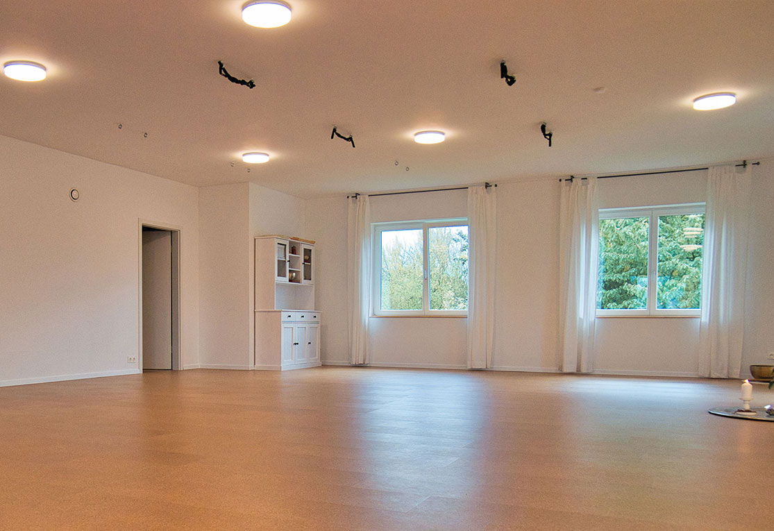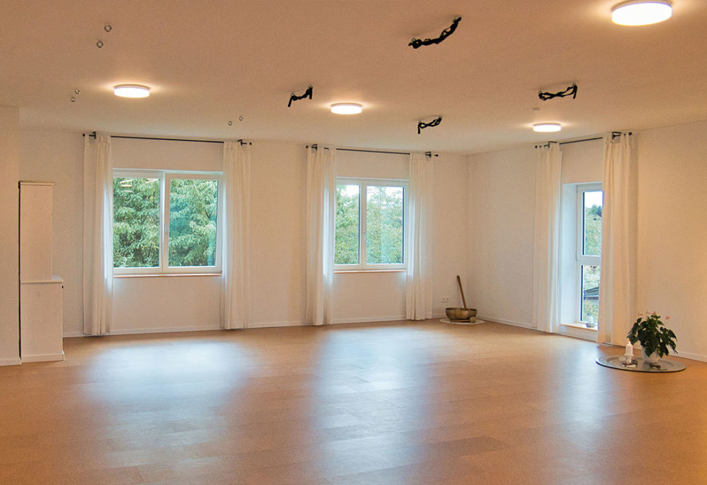 Nun ist der große Yogaraum fertig und in Betrieb genommen. Ein heller und freundlicher Raum mit wunderbarer Akustik und schöner Atmosphäre. Wir hatten schon wunderbare Stunden auf der Matte, im Tuch, mit Massageliegen und bei Vorträgen mit lieben Menschen.